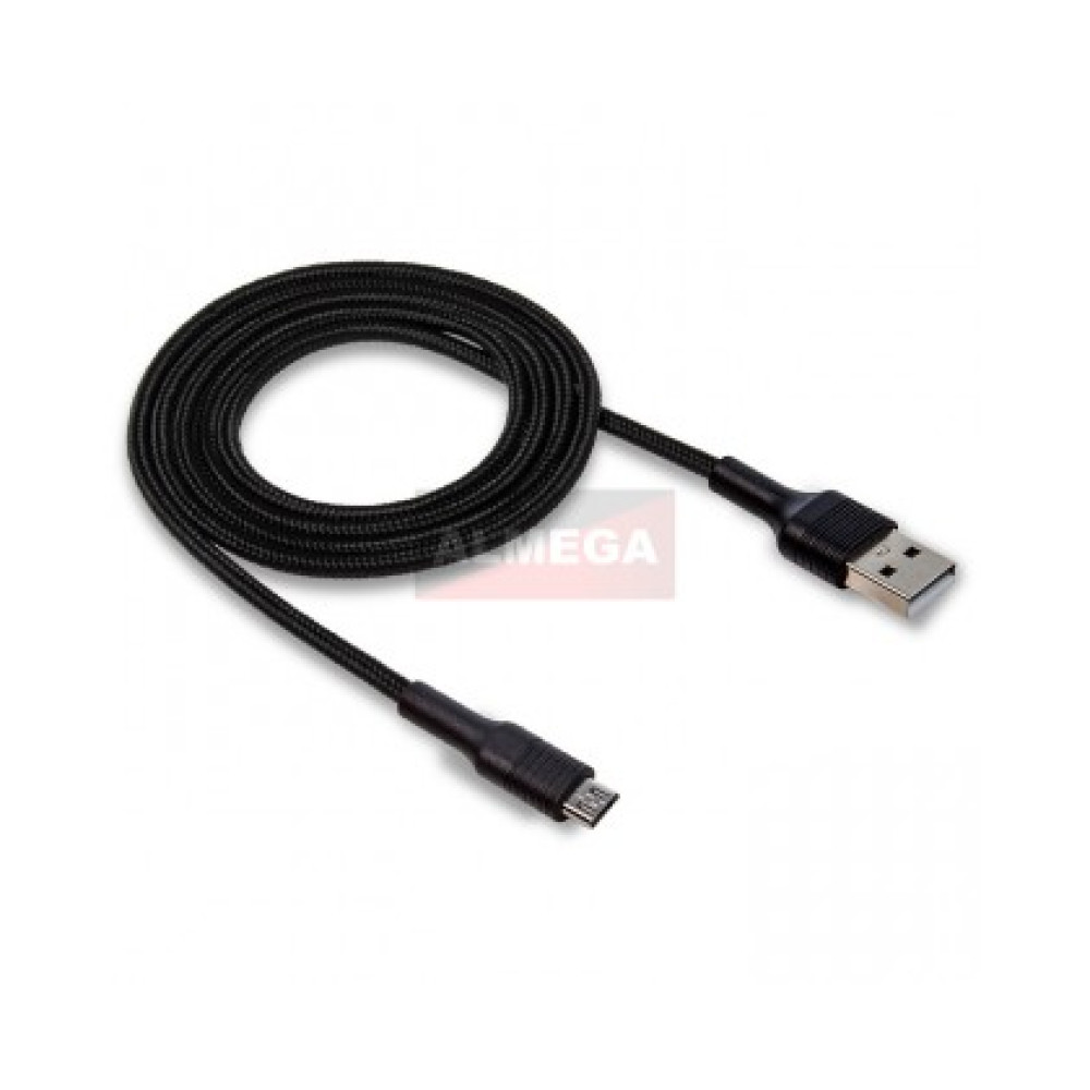Кабель USB "WALKER" microUSB в матерчатой обмотке 1м, (2.4А), черный, в индив. коробке,С575,