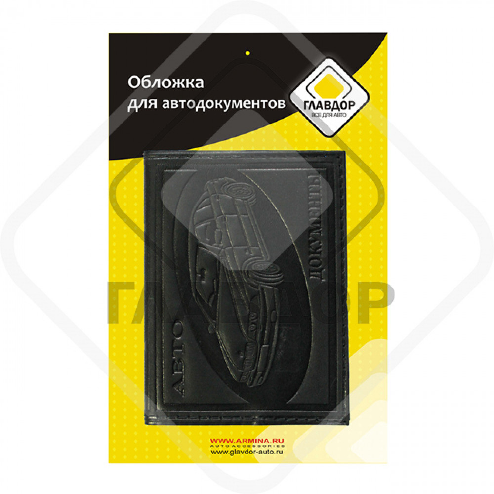 Обложка для автодокументов черная. Натуральная кожа с тиснением.