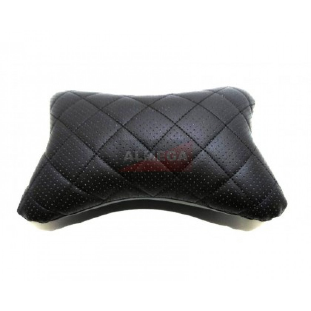 Подушка автомобильная на подголовник, косточка, черная - ромб строчка, ортопедическая эко-кожа